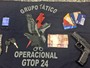 Carteira, pistola de brinquedo e dinheiro foram apreendidos, diz polícia.Dois adultos e dois adolescentes foram detidos; crime ocorreu nesta terça.